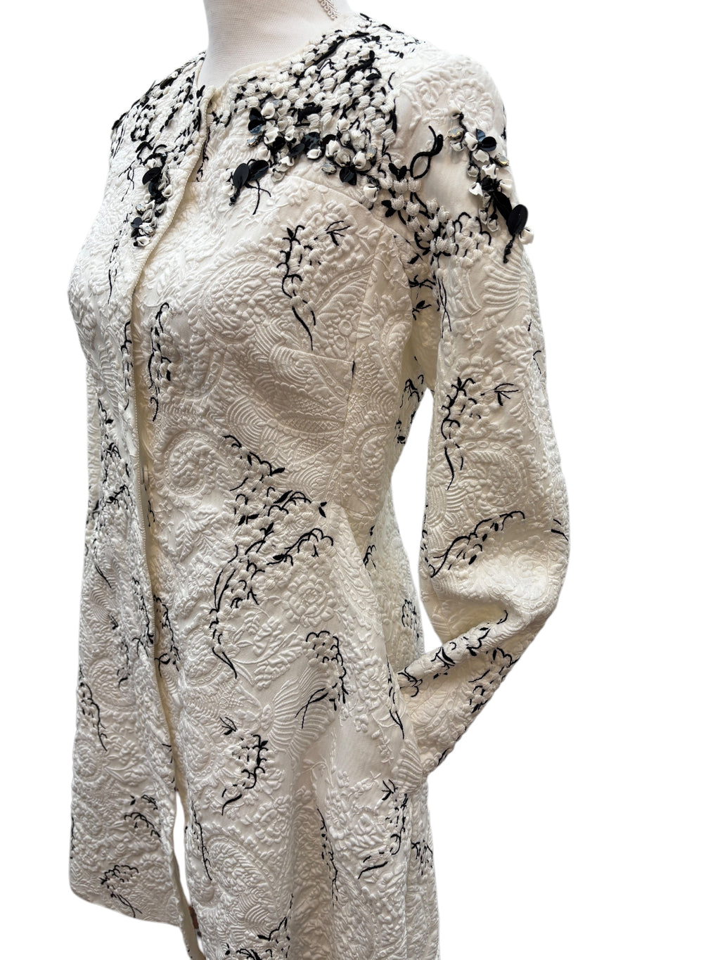 Moncler Gamma Rouge White and Black Embellished Floral Coat, M