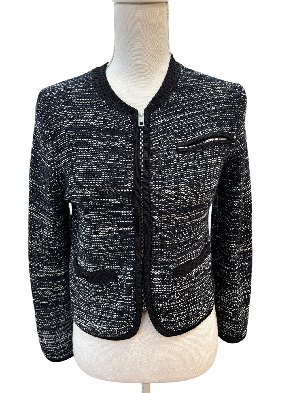 Rag & Bone Black and White Textured Zippered Jacket, XS