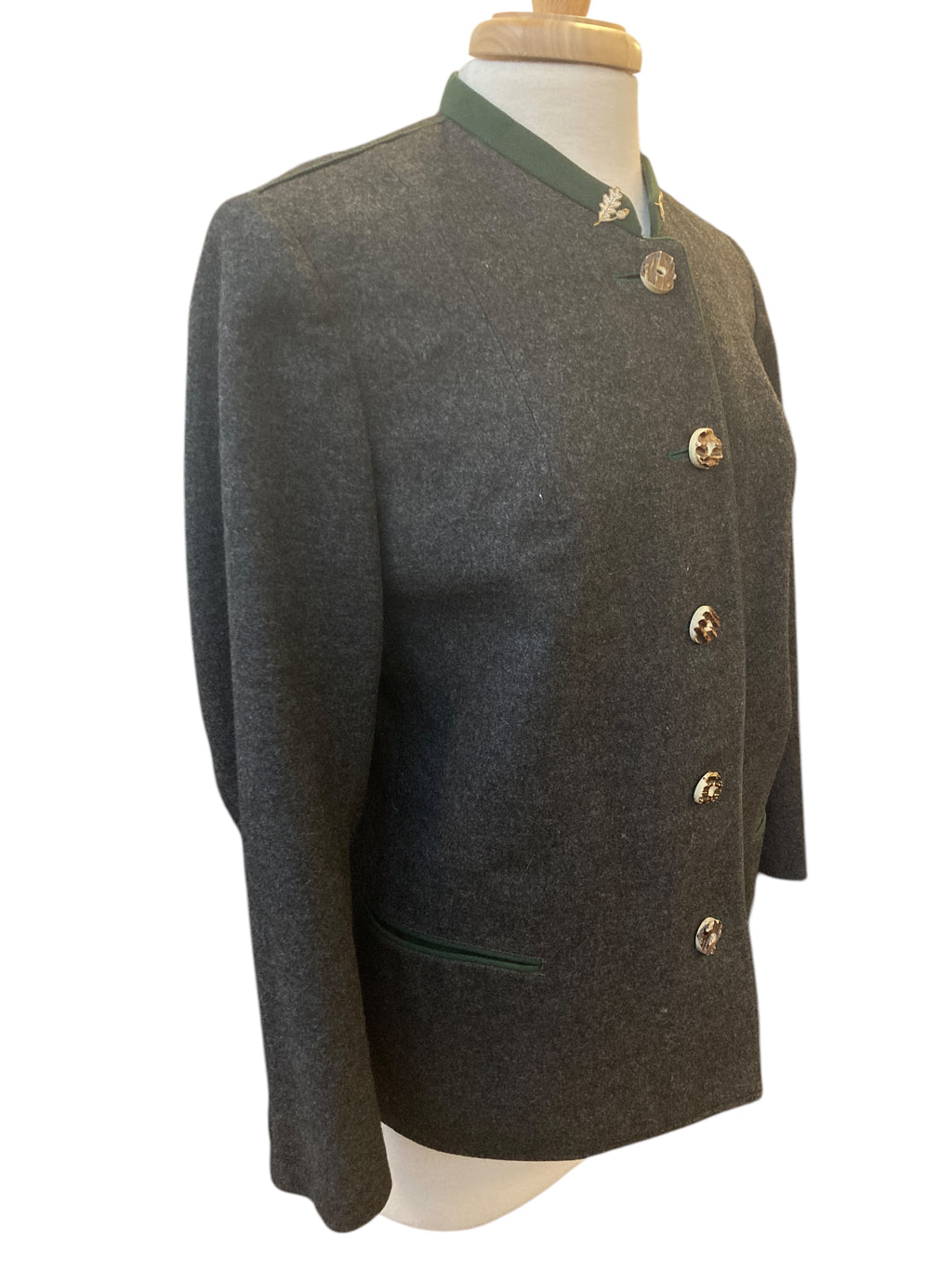 Karlin Original Loden Wool Charcoal Jacket with Green Trim, L