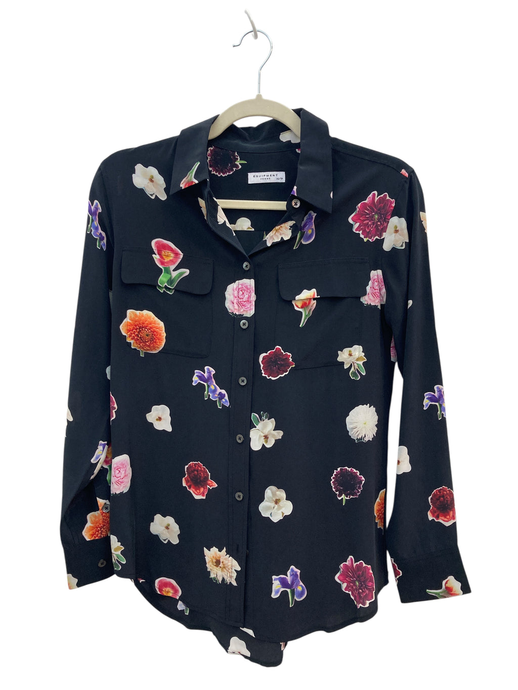 Equipment Black Silk Shirt with Flowers, XS/TP