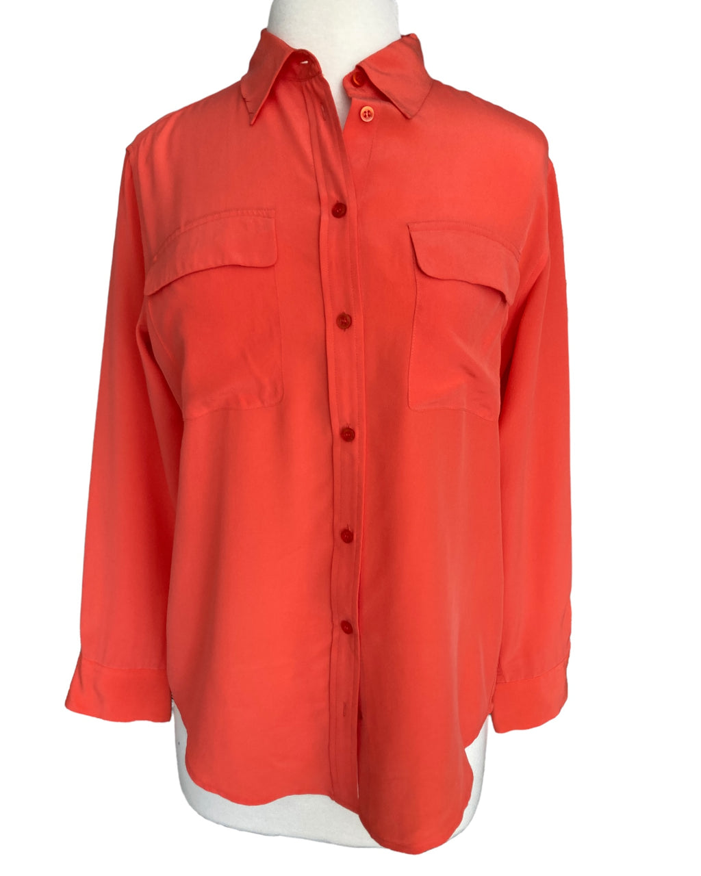 Equipment Orange Plaid Silk Pullover Shirt, XL