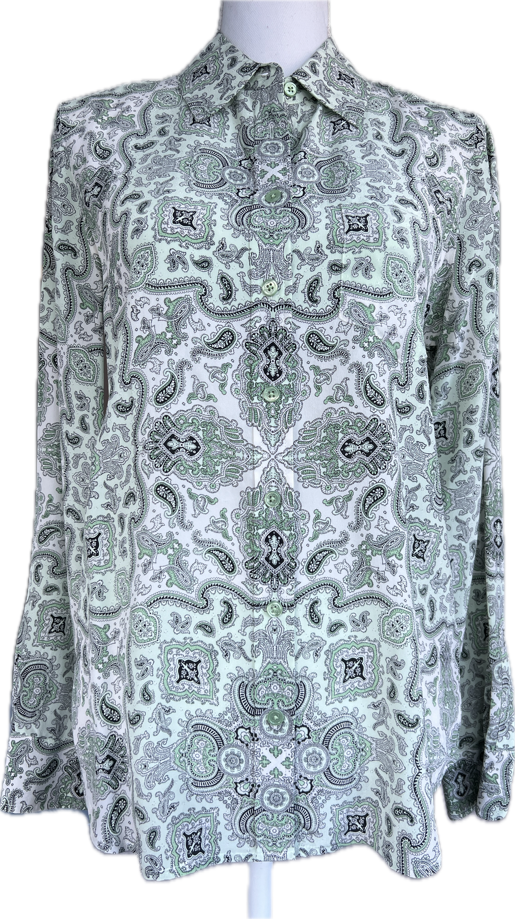 Equipment Mint Green and Black Paisley Silk Shirt, S