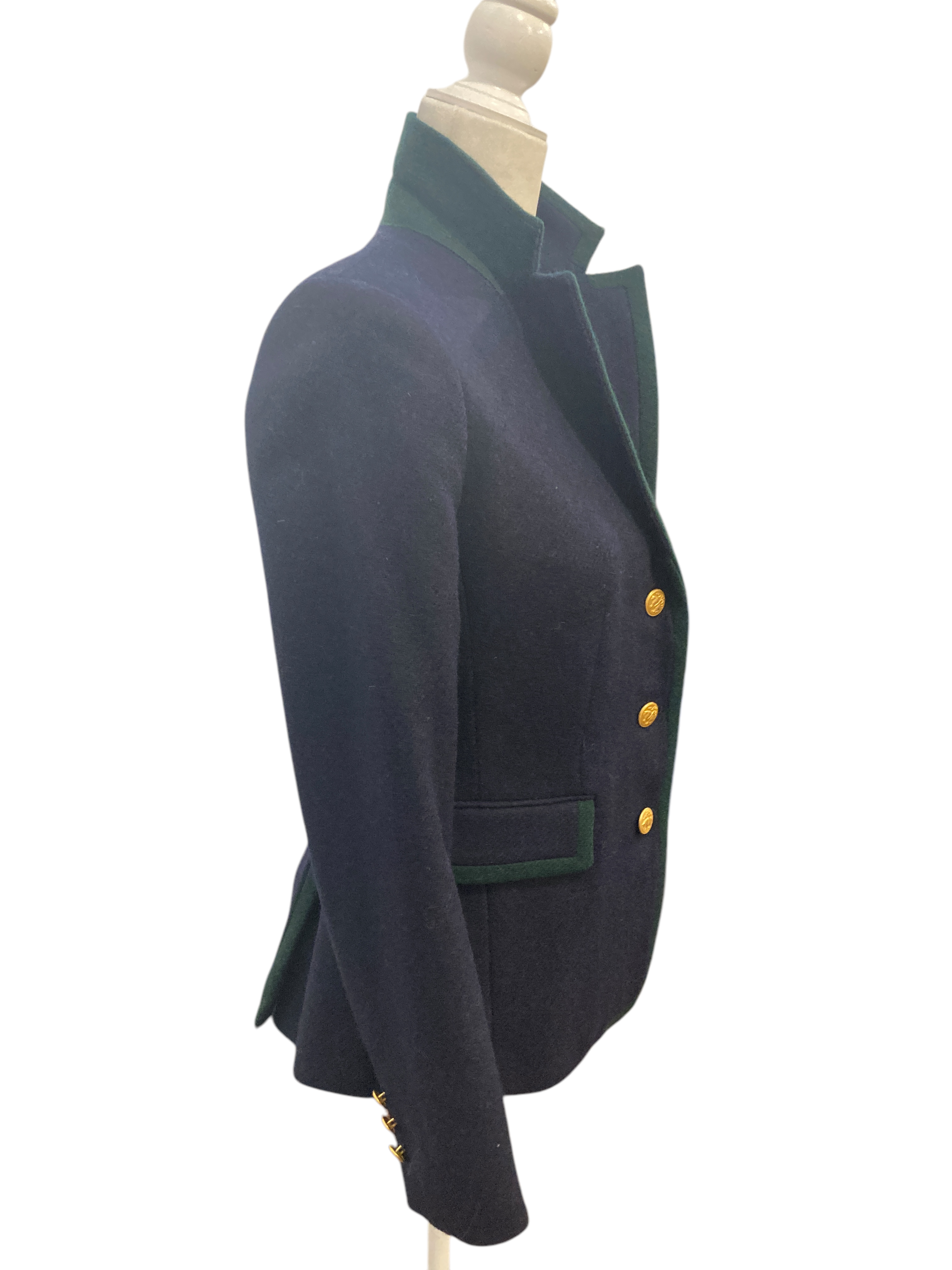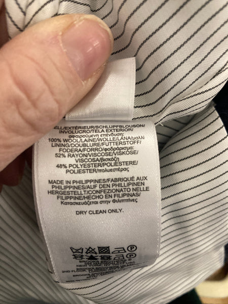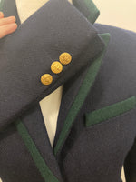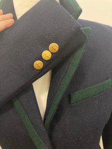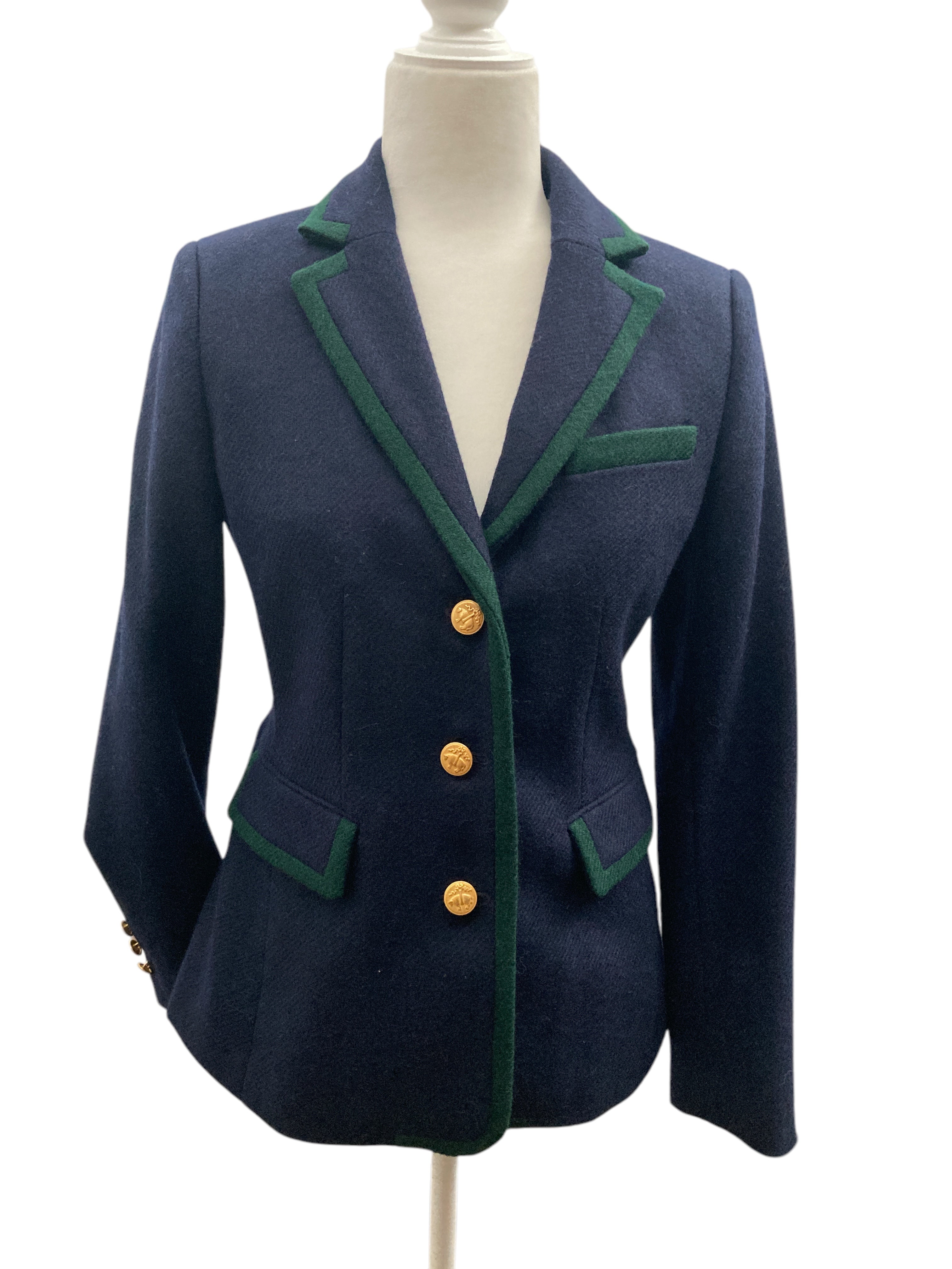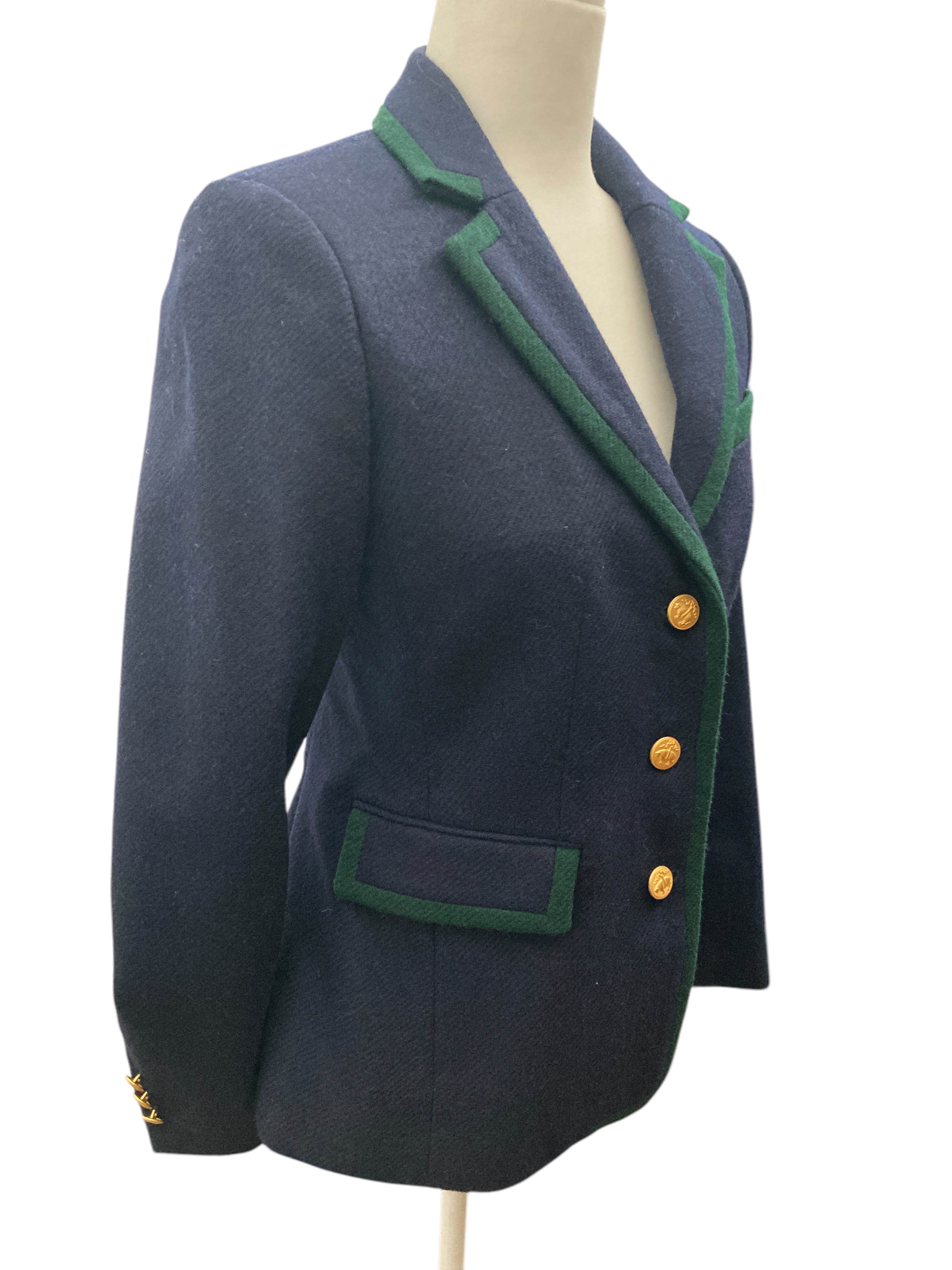 My favorite blazer, and not just because it is Second Serve's colors. But maybe it is because it is old school prep navy and green, in the quintessential wool university blazer with blue and white striped lining. And those buttons! Prep originated with Brooks Brothers, in my humble opinion. Everything else is a knock off. So get the real deal! Excellent used condition.