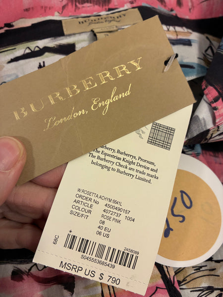 Adorable shirt dress with pockets, button placket closure, and belt. With tags. Excellent preowned condition. Retail $790.