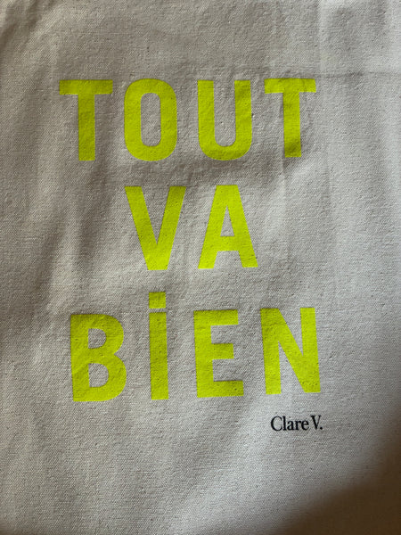 Unlined canvas open top tote. Yup, it's just a canvas tote but this is what the resale value is! Claire V., a California designer, has wonderful bags. We still have an early Clare V. silk tote! But yes, it is just a canvas tote. Excellent used condition-minor wear at top and handles. Retail $550 (!)