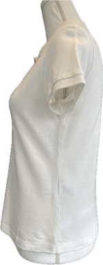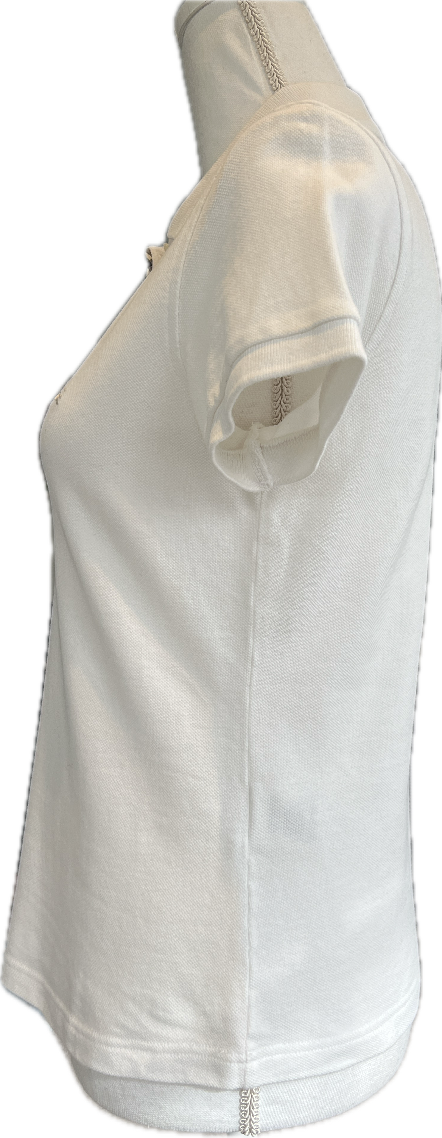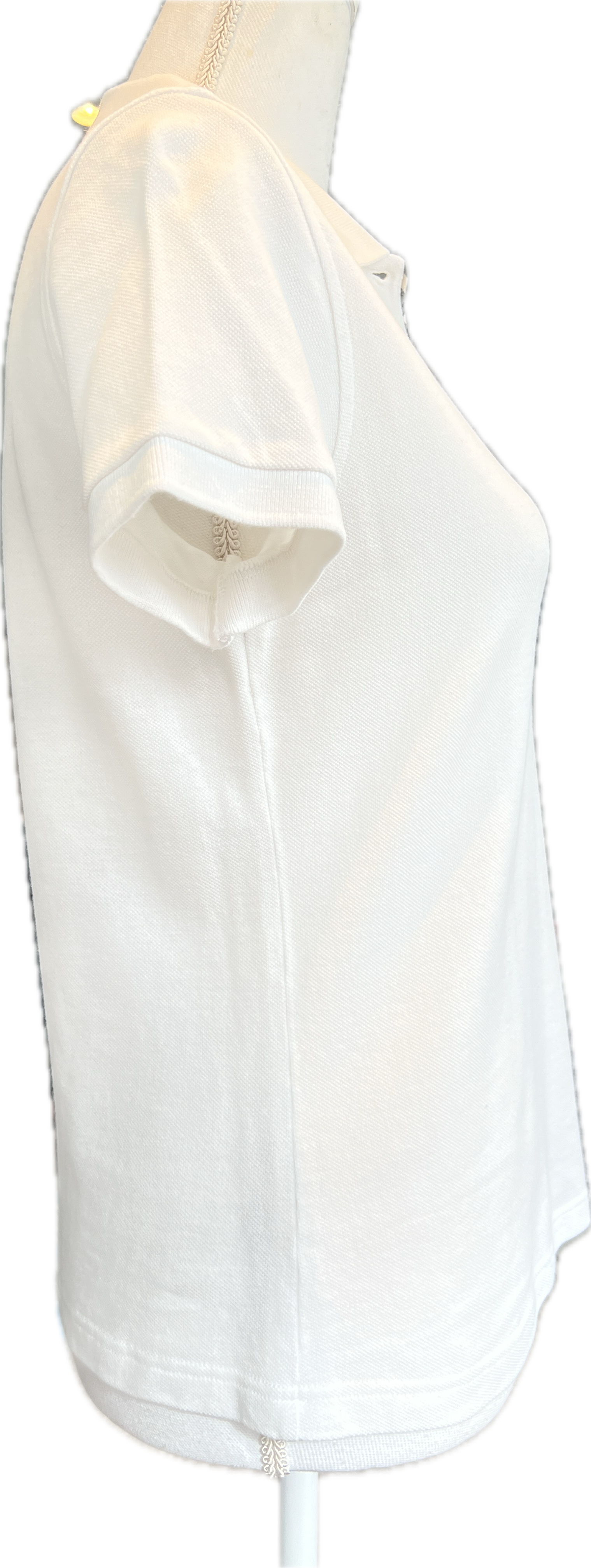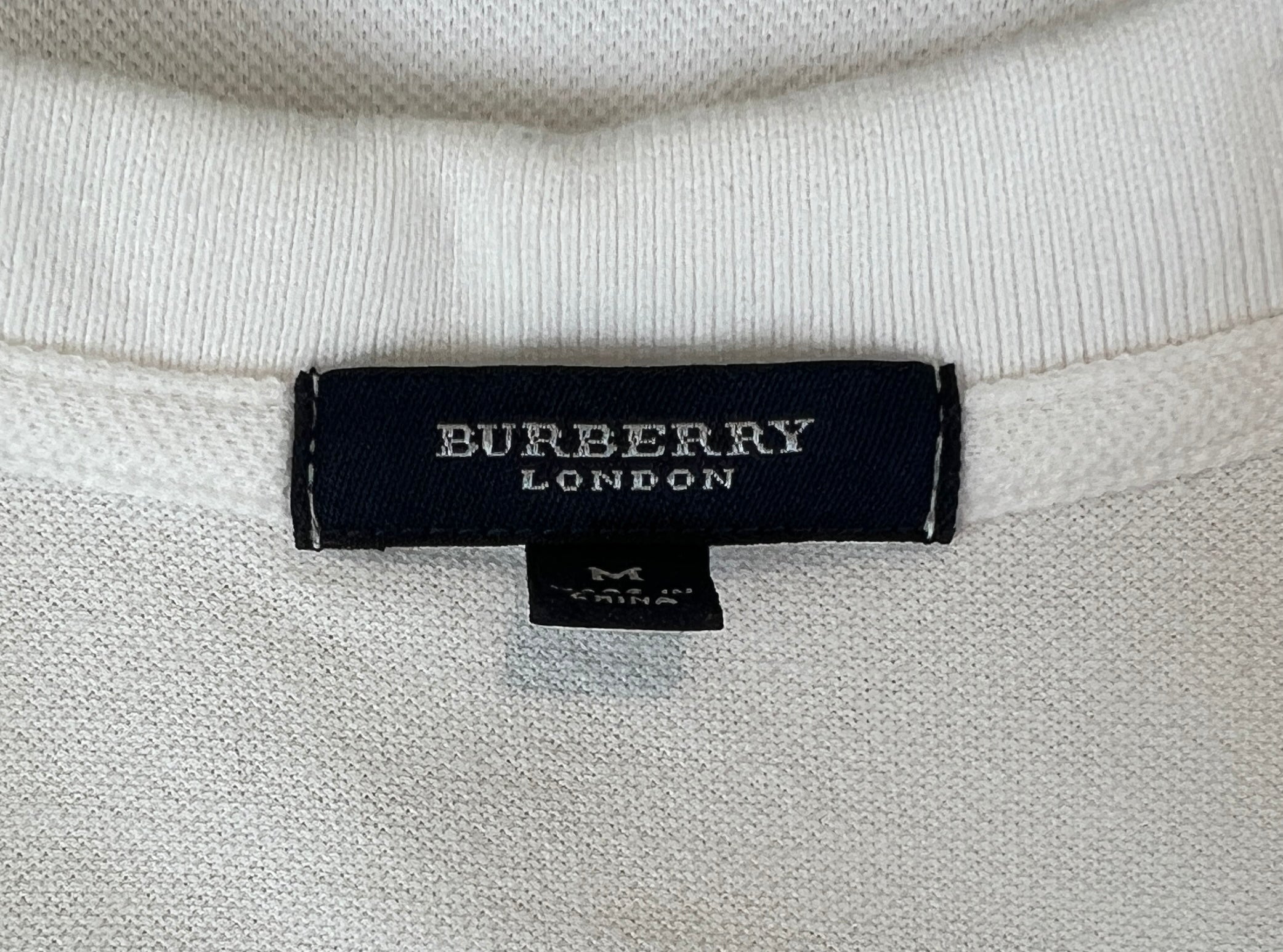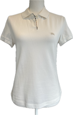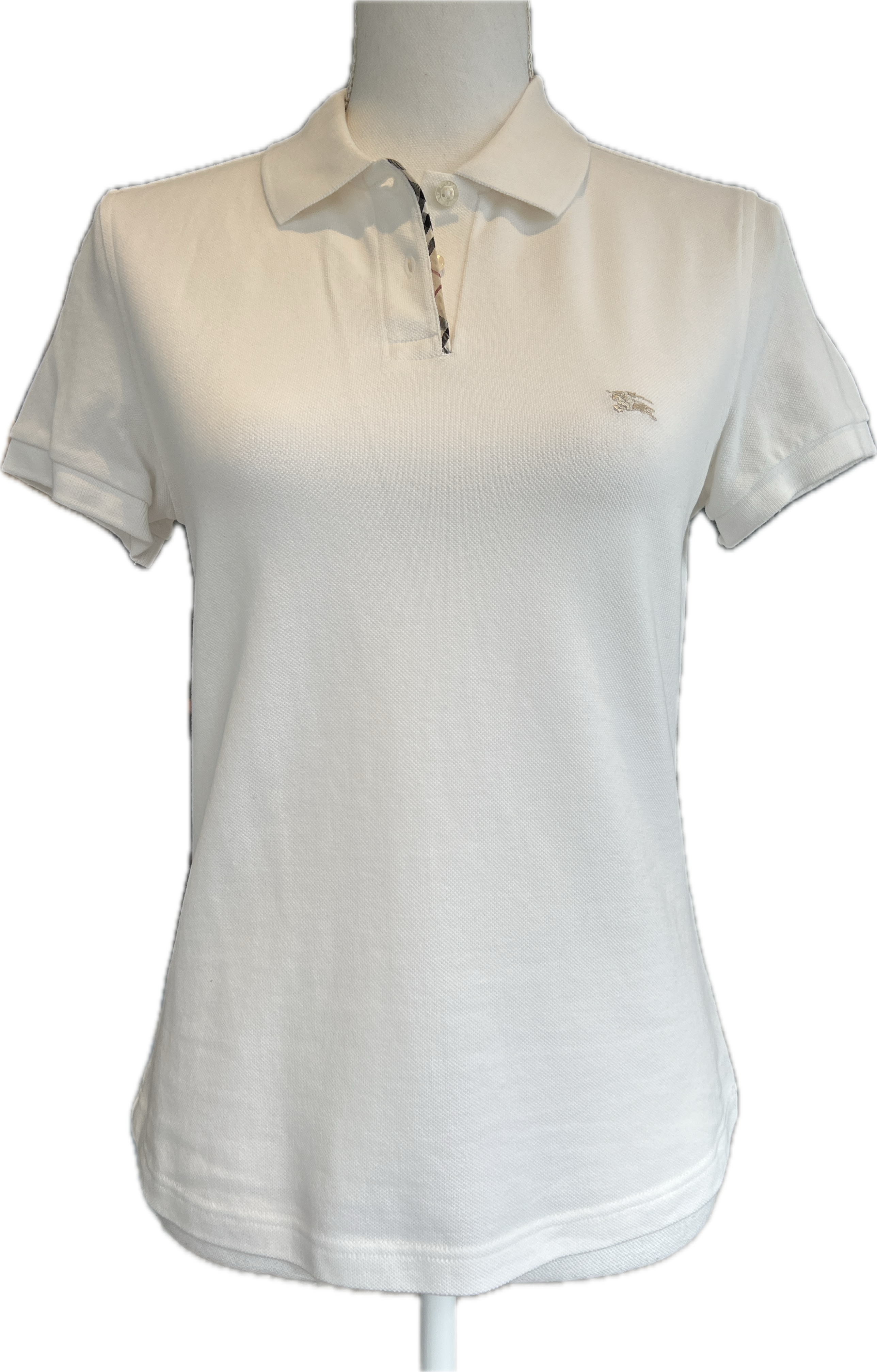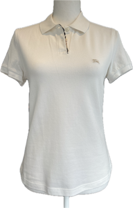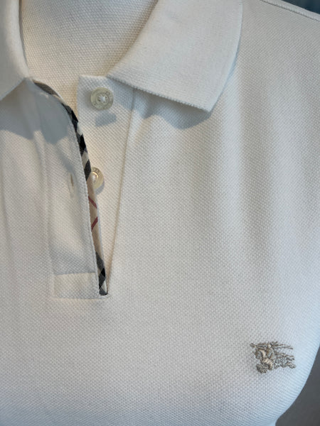 Burberry white polo top with nova plaid trim. Excellent used condition.