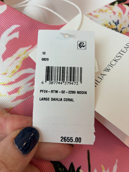 Such a beautiful dress. With dahlias! Sleeveless, open back, zipper up the back, with lining. Has pockets to boot. With tags, retail $2655. Excellent preowned condition.