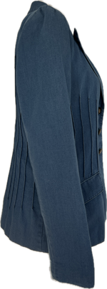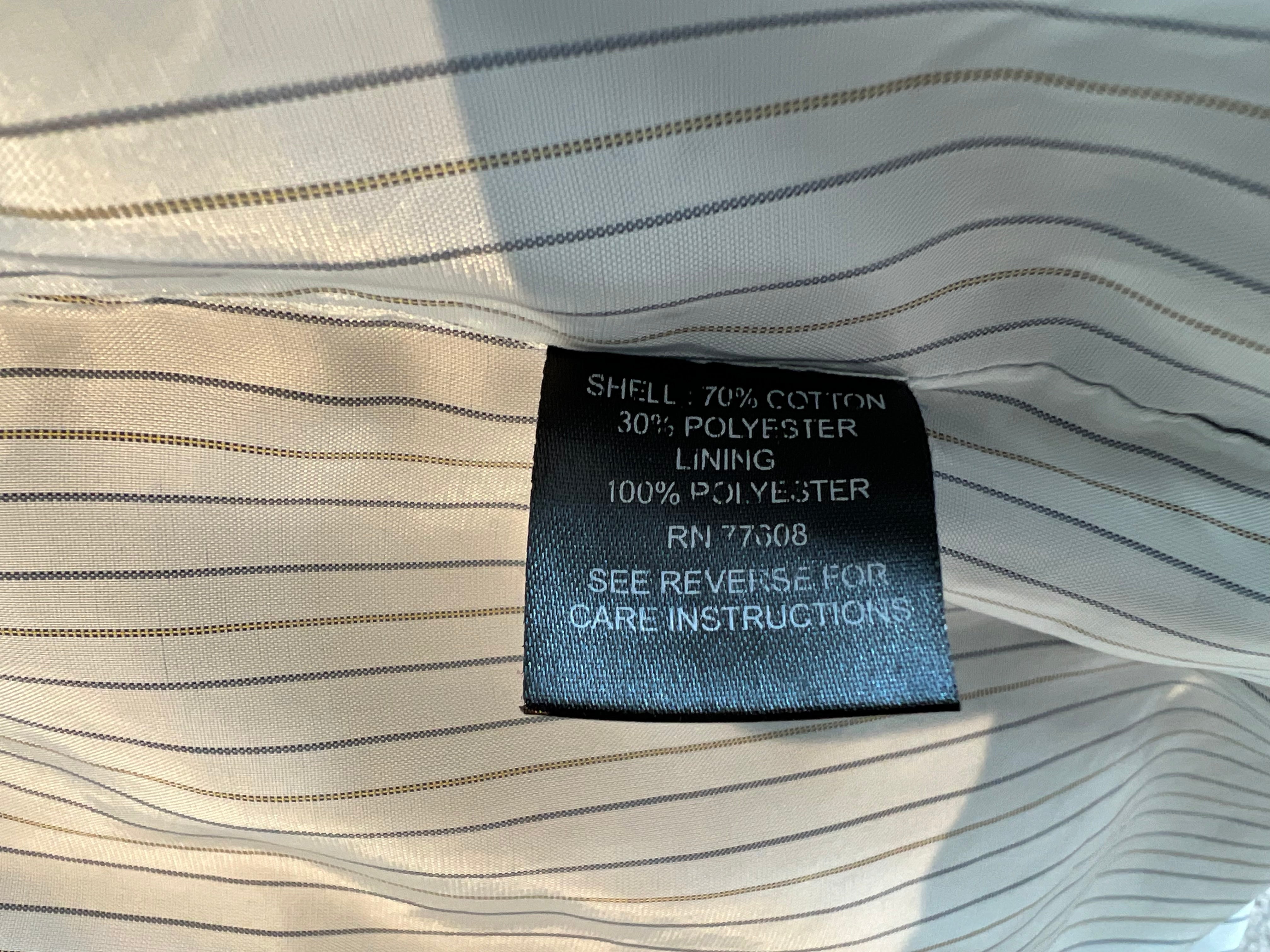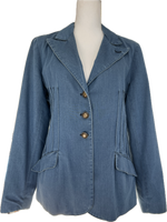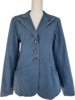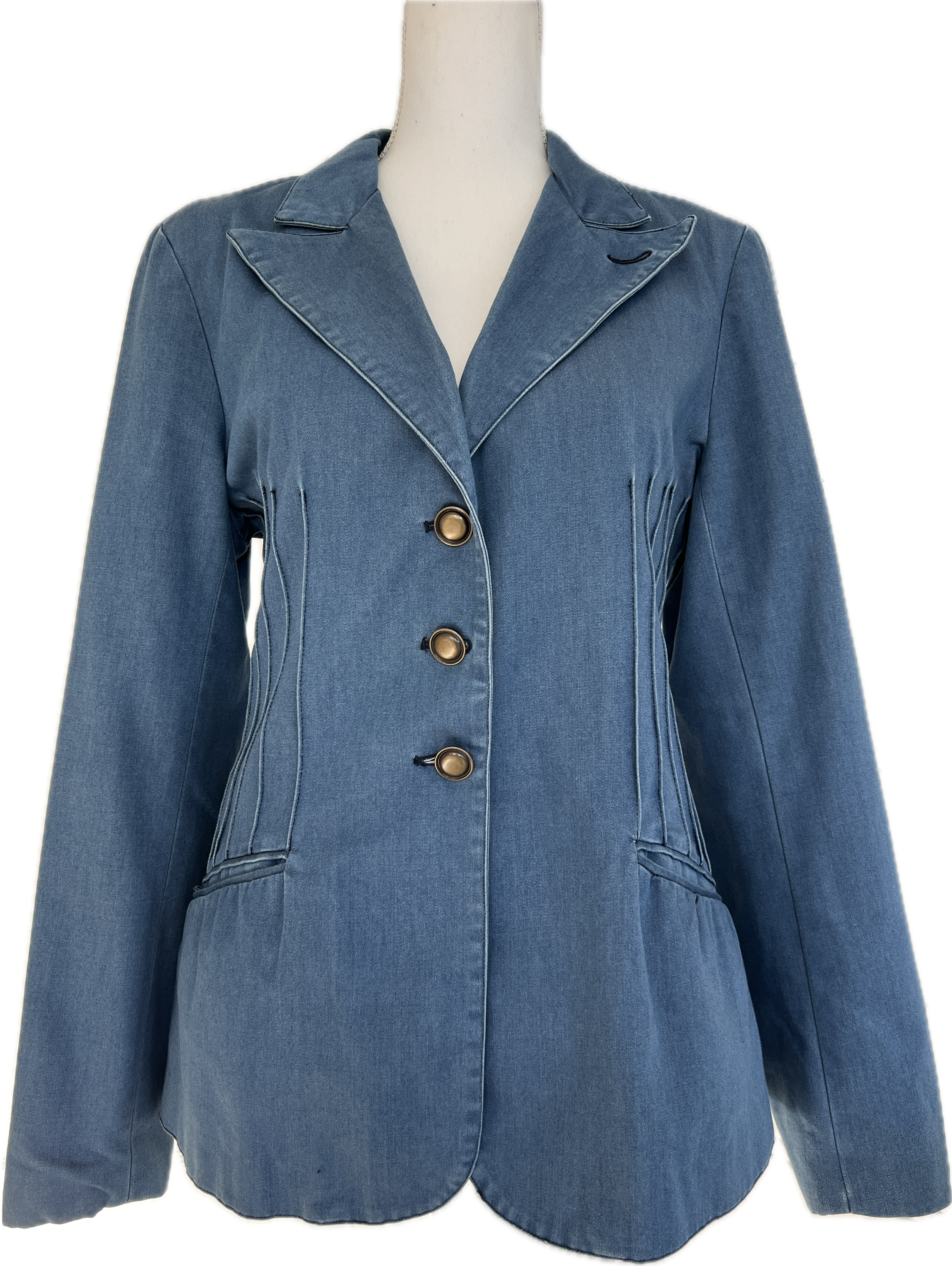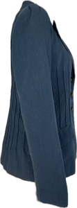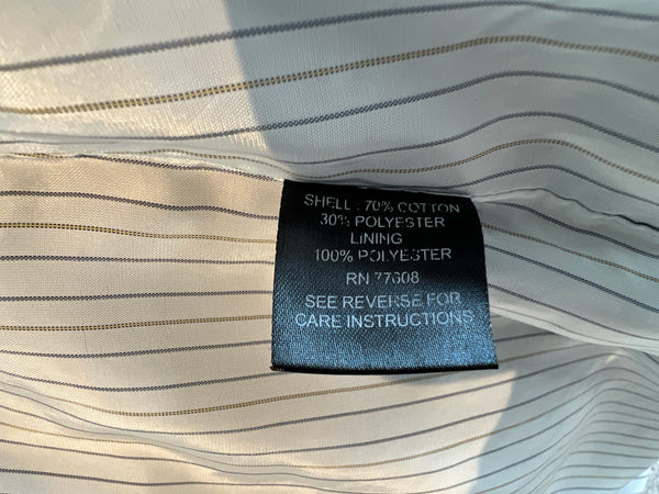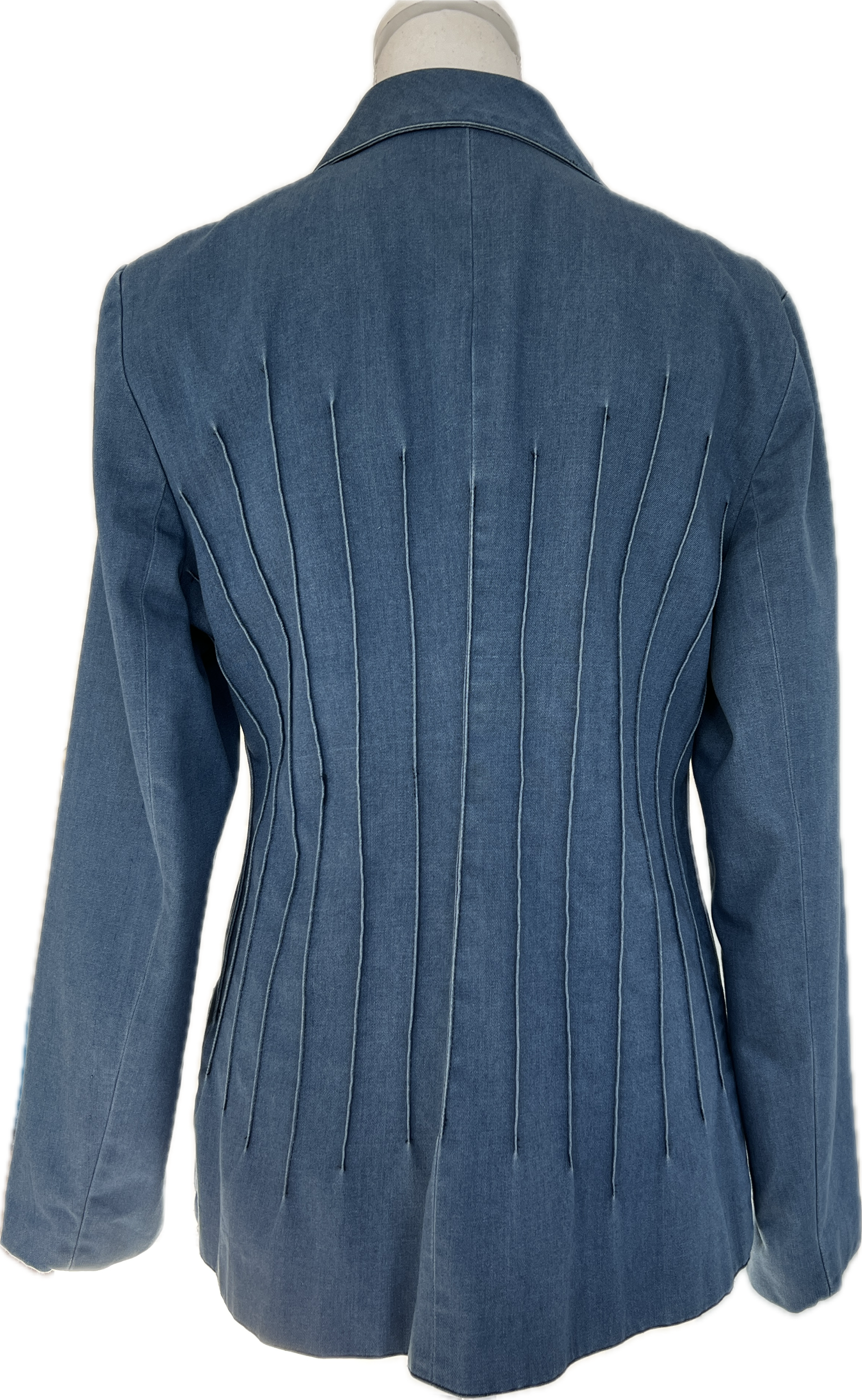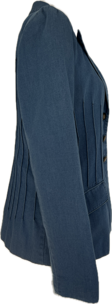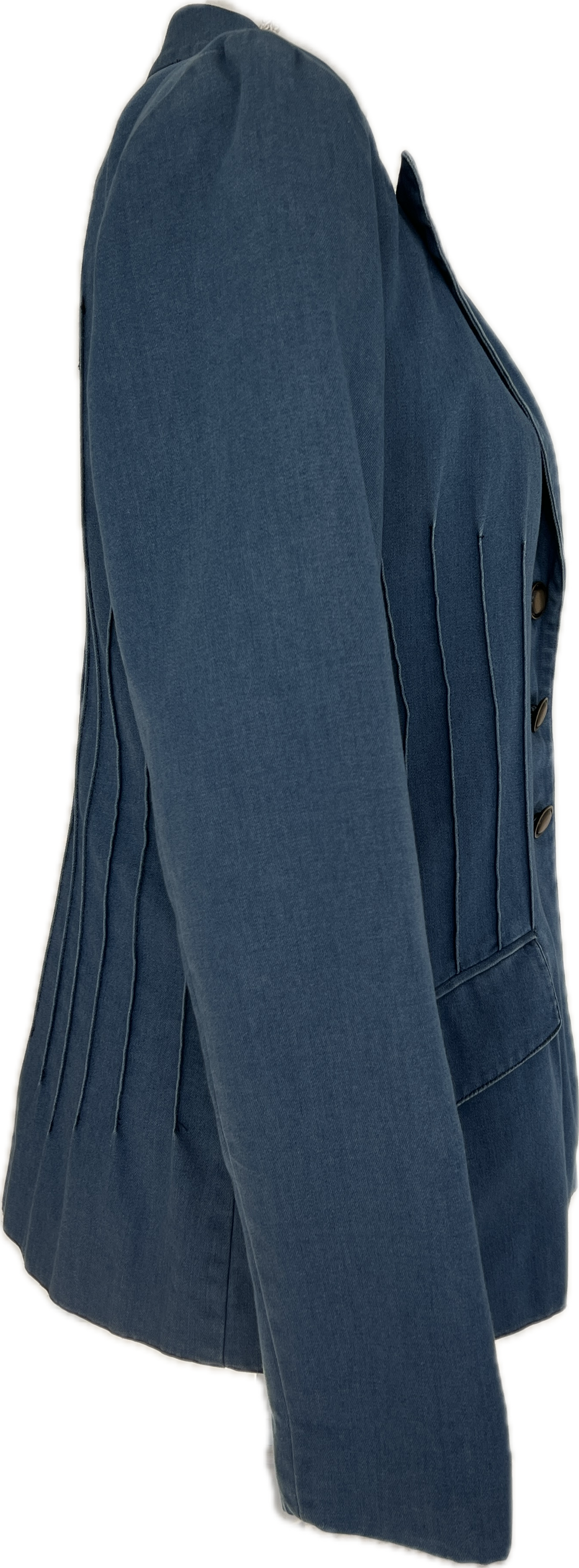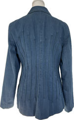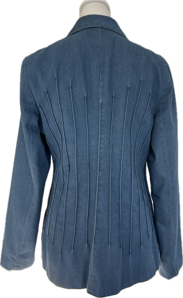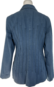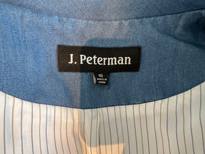 There are some people who think J. Peterman was just a character on Seinfeld. Don't be one of them! The grandiloquent descriptions in the J. Peterman catalog are legendary, and to me, an inspiration! This three button blazer has a preppy striped lining, two front pockets with flaps that can be tucked in or left out (your preference). There is vertical pintuck faux pleating detail on the front and back. There is a minor mark on the inside of the blazer. Excellent used condition.