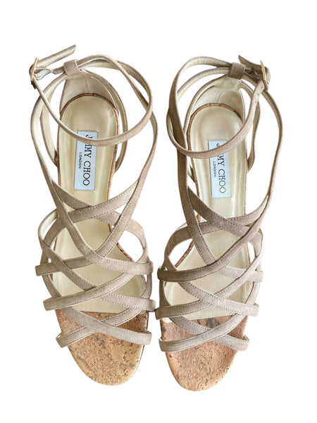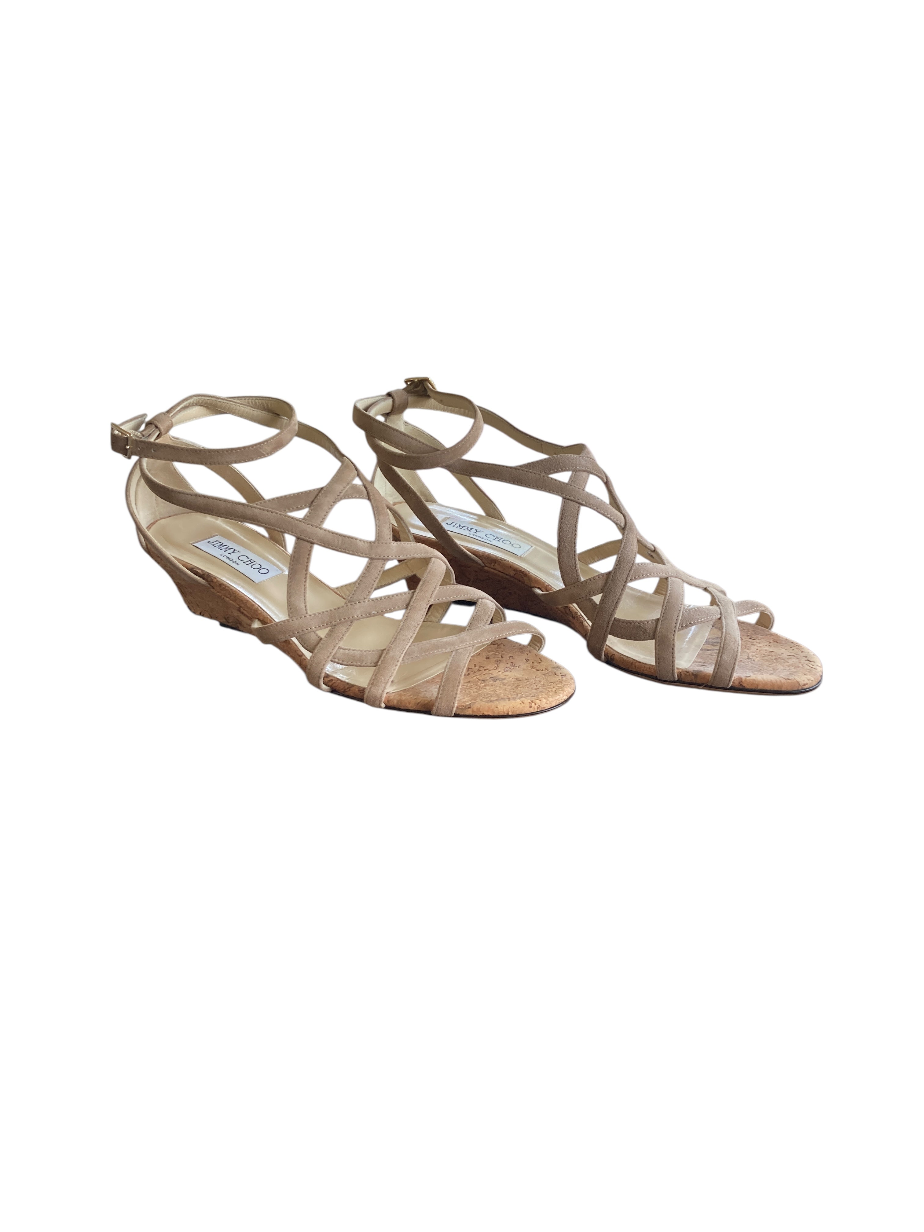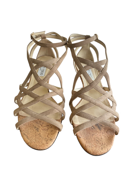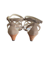 A strappy sandal you can actually wear, and balance! Moderate wear on the soles and light wear on footbed. Excellent used condition.
