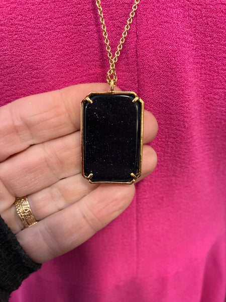 I love this simple but elegant pendant! Gold plated metal, semi precious stone, pave crystal border. Lobster claw clasp. Excellent used condition.