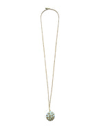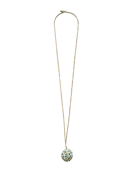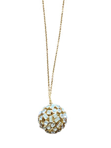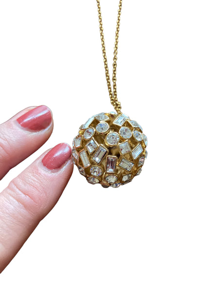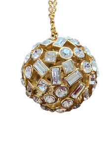 The finishing touch to your holiday outfit! Gold plated necklace with bezel settings secured in a sphere. Excellent used condition, no visible flaws. Dust bag included.