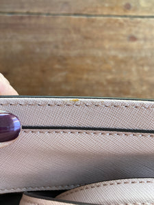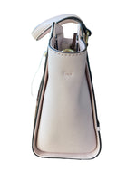 Handbag or crossbody, you decide. Silver hardware on bag and feet. Zippered top but adjustable crossbody strap to add if you like. Interior zipper pocket. Cute bow and small jewels detail. With tags, but no dust bag. Excellent used condition (one tiny mark spotted, see last picture). Retail approx. $329