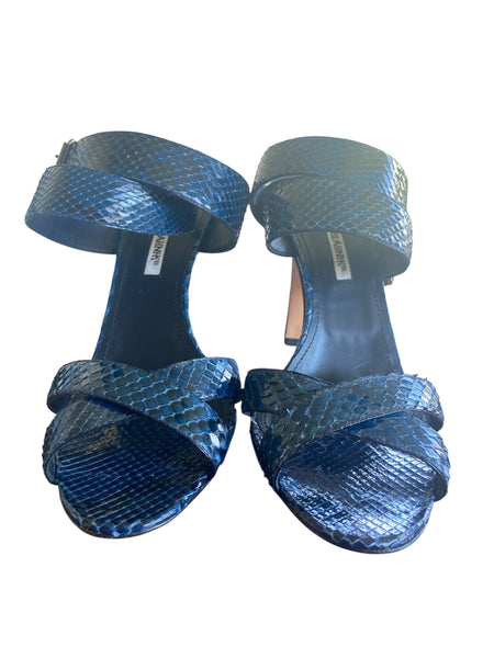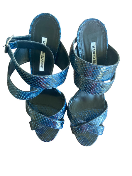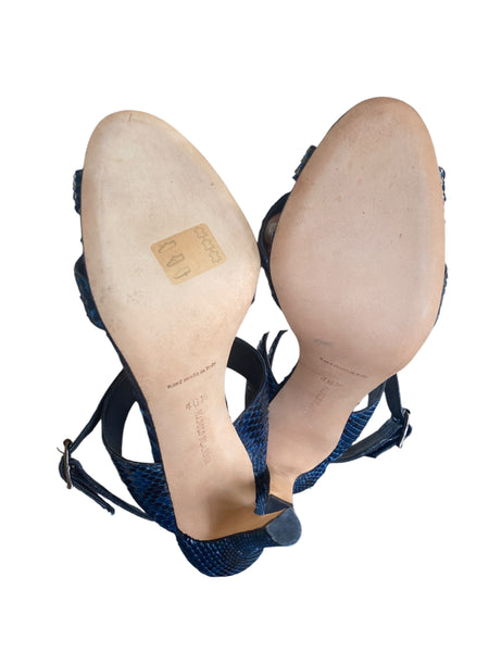 Very little wear on these sexy sandals. Soles have only a few marks, which probably means they were worn once or twice. Left shoe has a few scales curling up, but only on very close inspection. Excellent used condition.