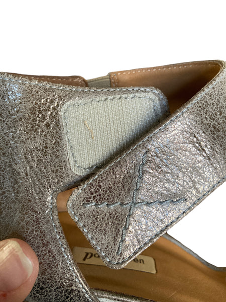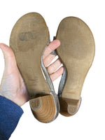 Elastic in the ankle strap! Velcro closure. Excellent used condition-some scuffing on soles.