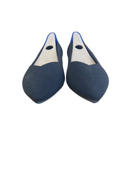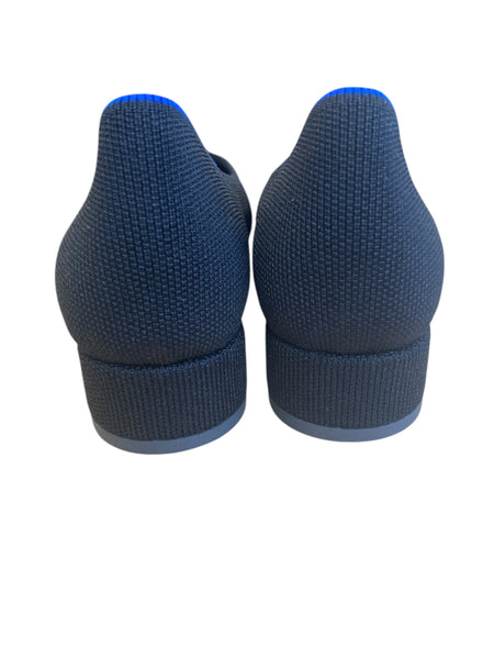 Donated in box and unworn. Black with royal blue trim at the heel. Cool camo sole! Super comfortable out of the box and machine washable. Excellent preowned condition (there is the faintest dust mark when the left shoe is closely inspected- see last picture). Excellent preowned condition.