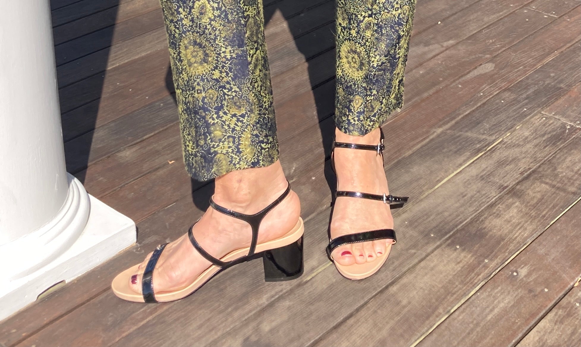 Beautiful versatile black sandals for dresses and jeans. Tiny rhinestone detail on the right shoe. Two adjustable straps for the perfect fit. Made in Italy. Excellent used condition. See how they look with our Lafayette 148 pants. Est. Retail $367