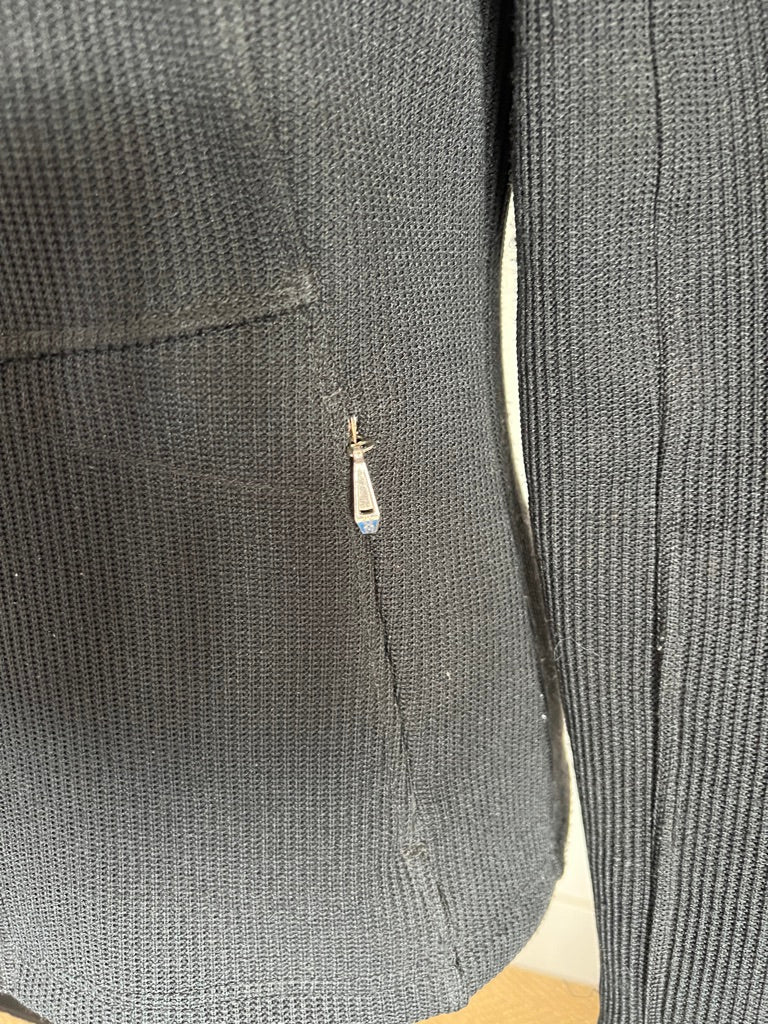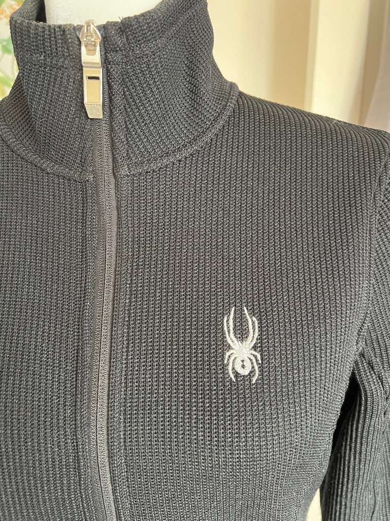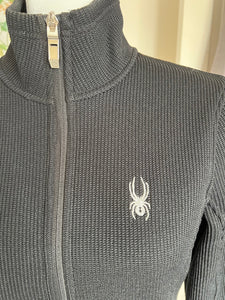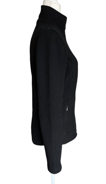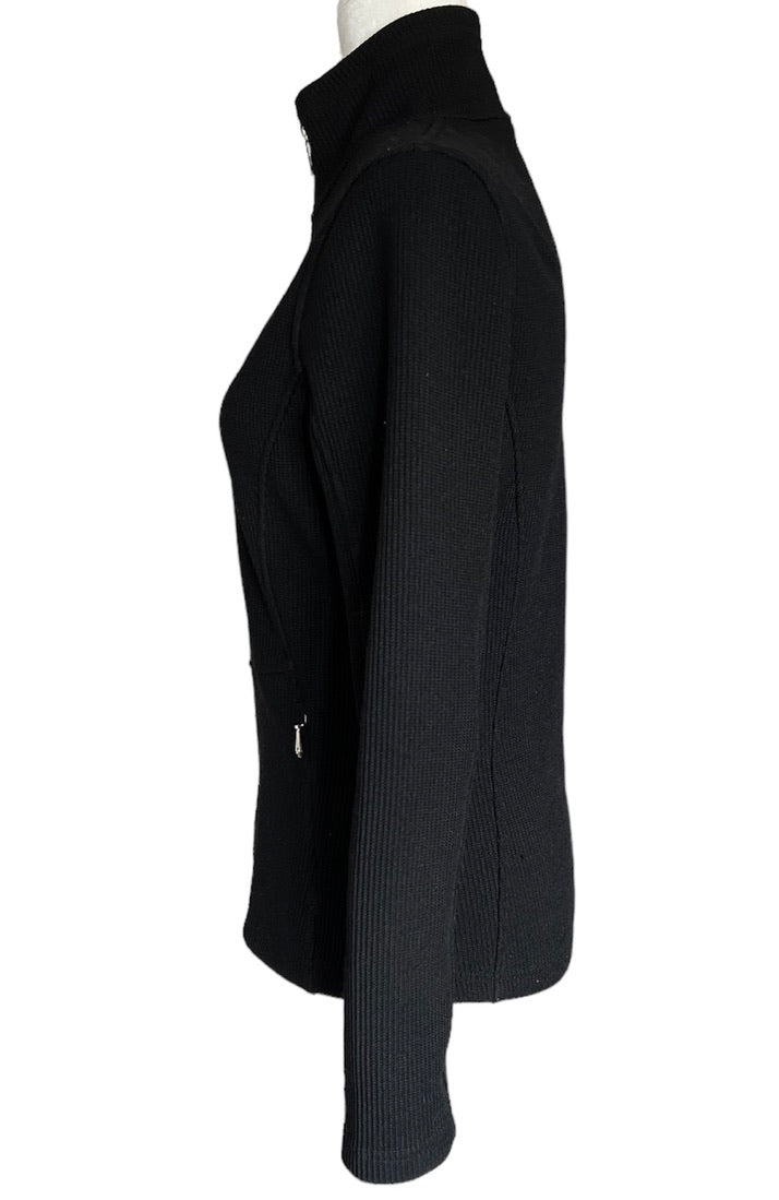 Cozy sweater jacket with knit on the outside and fleece on the inside. Two zipper pockets. Very good used condition-some pilling.