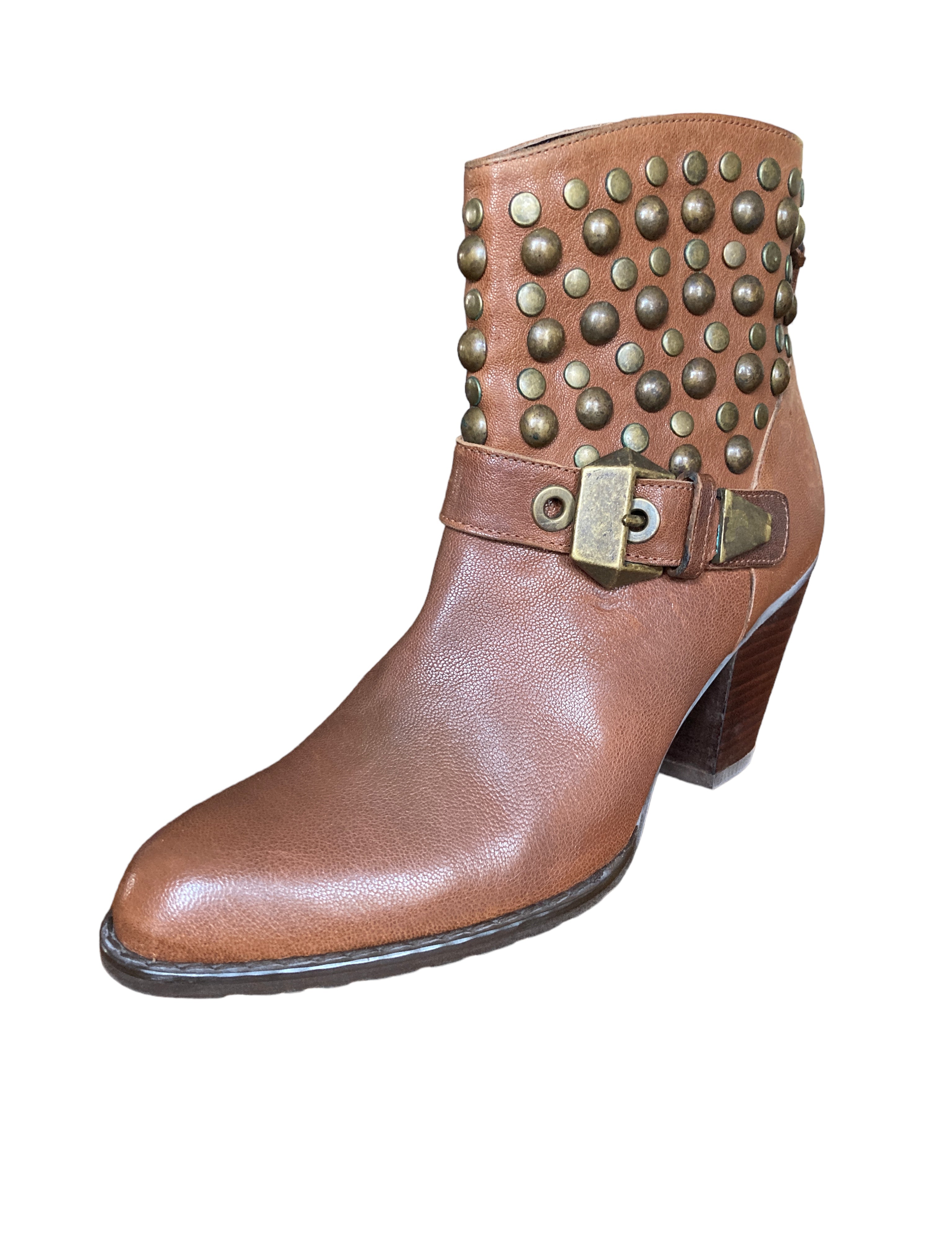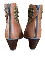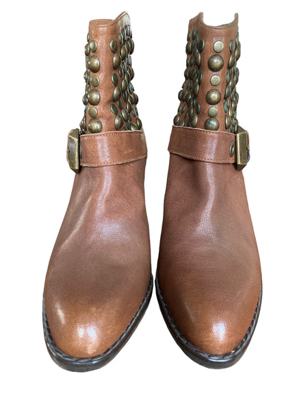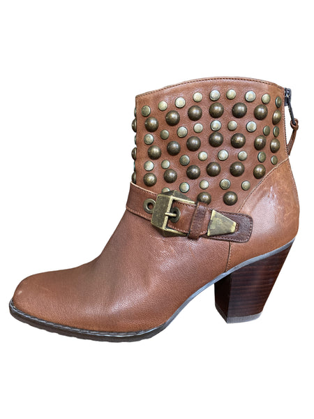 Rich brown booties with buckles and studs. These booties are new in the box-few scratches on the heels. Retail approx. $490.00