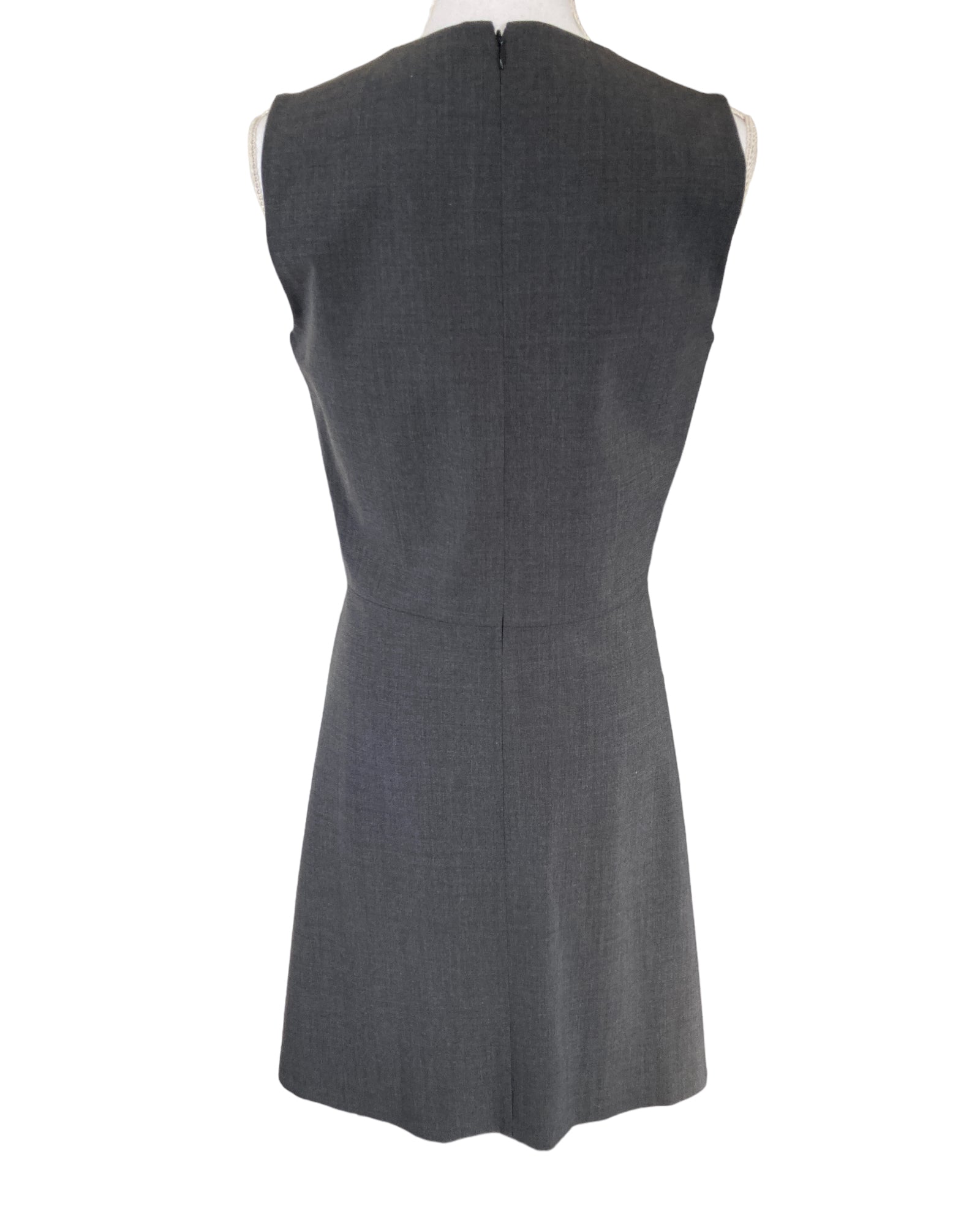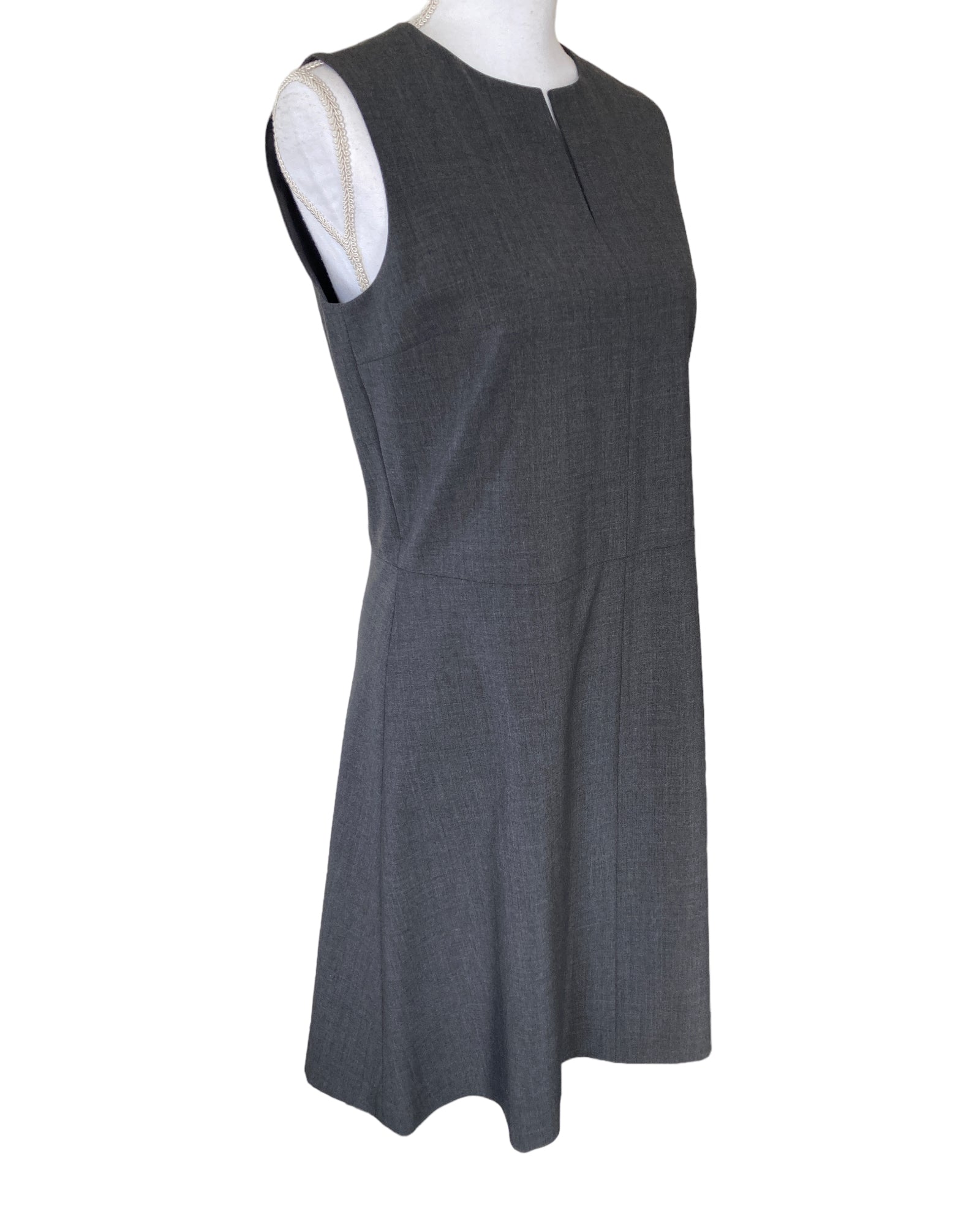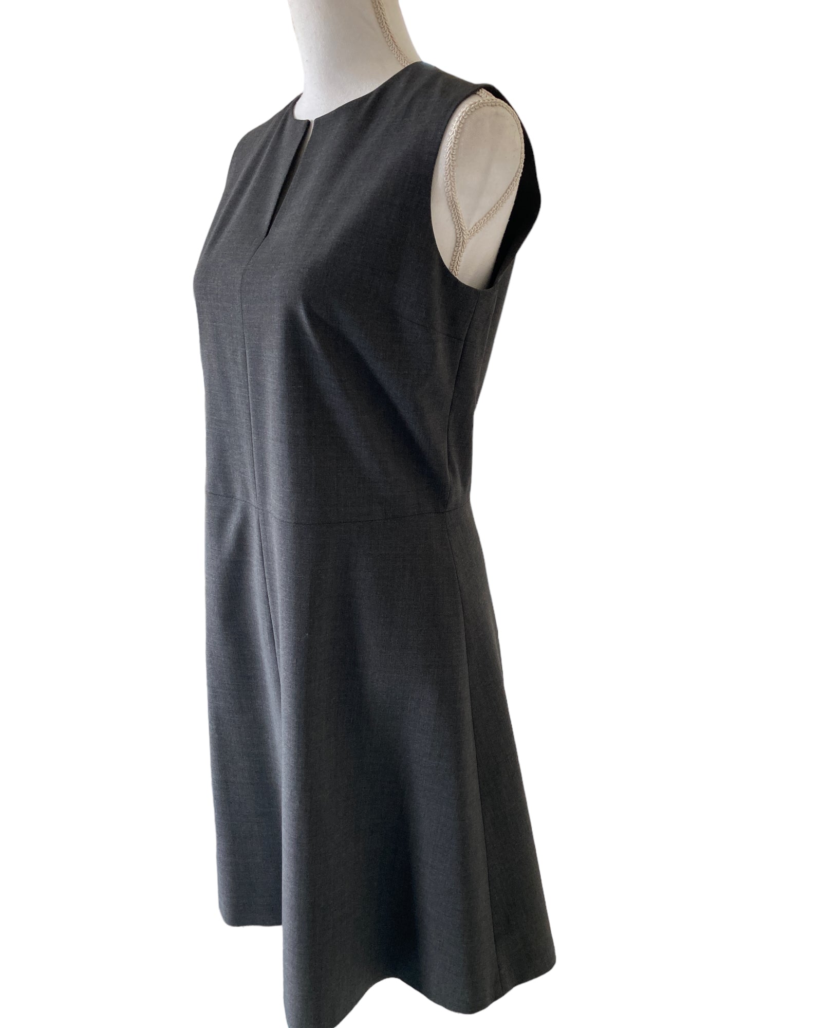 Sleeveless a-line notched neckline, lined. With tags, and in excellent condition. Retail est. $315