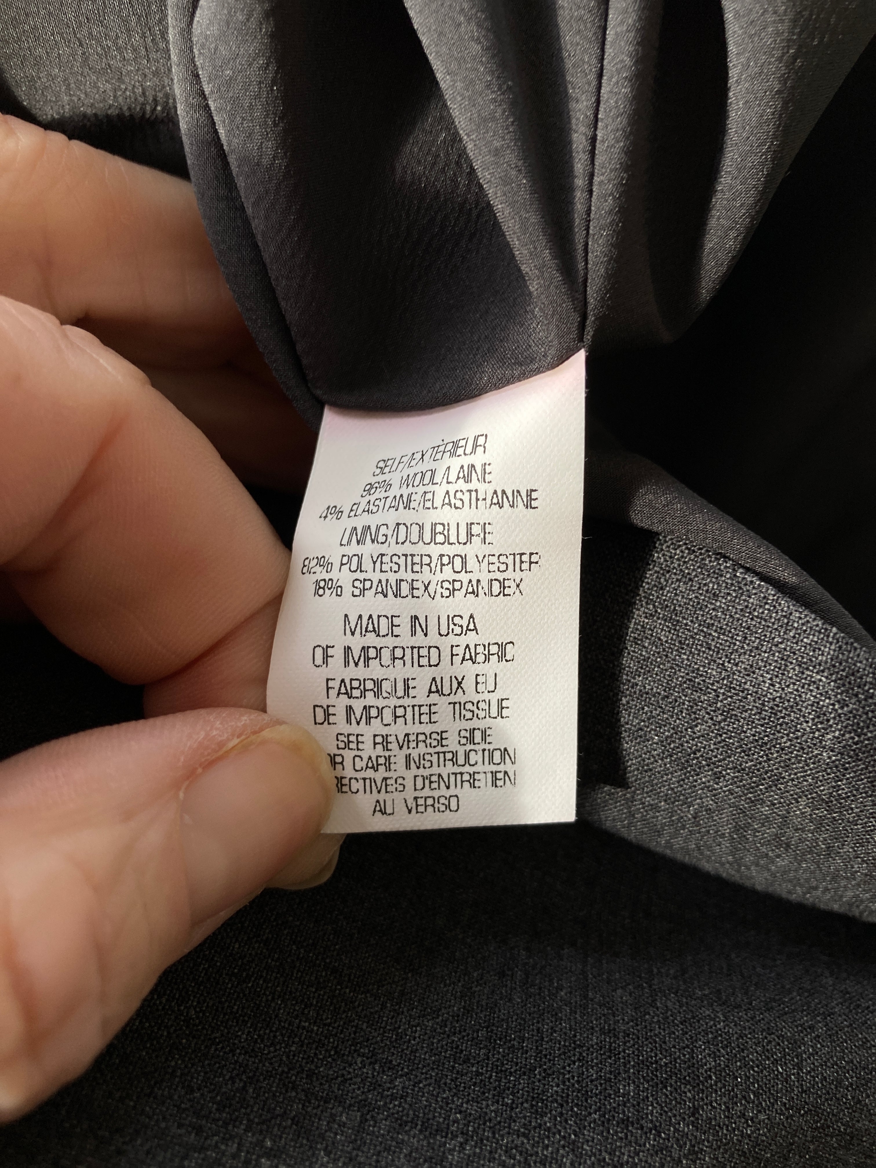 - Fabric-96% Wool, 4% Elastane.
